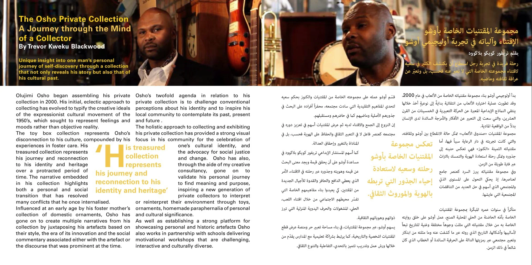 “Osho’s treasured collection represents his journey and reconnection to his identity and heritage over a protracted period of time. The narrative embedded in his collection highlight both a personal and social transition. ”